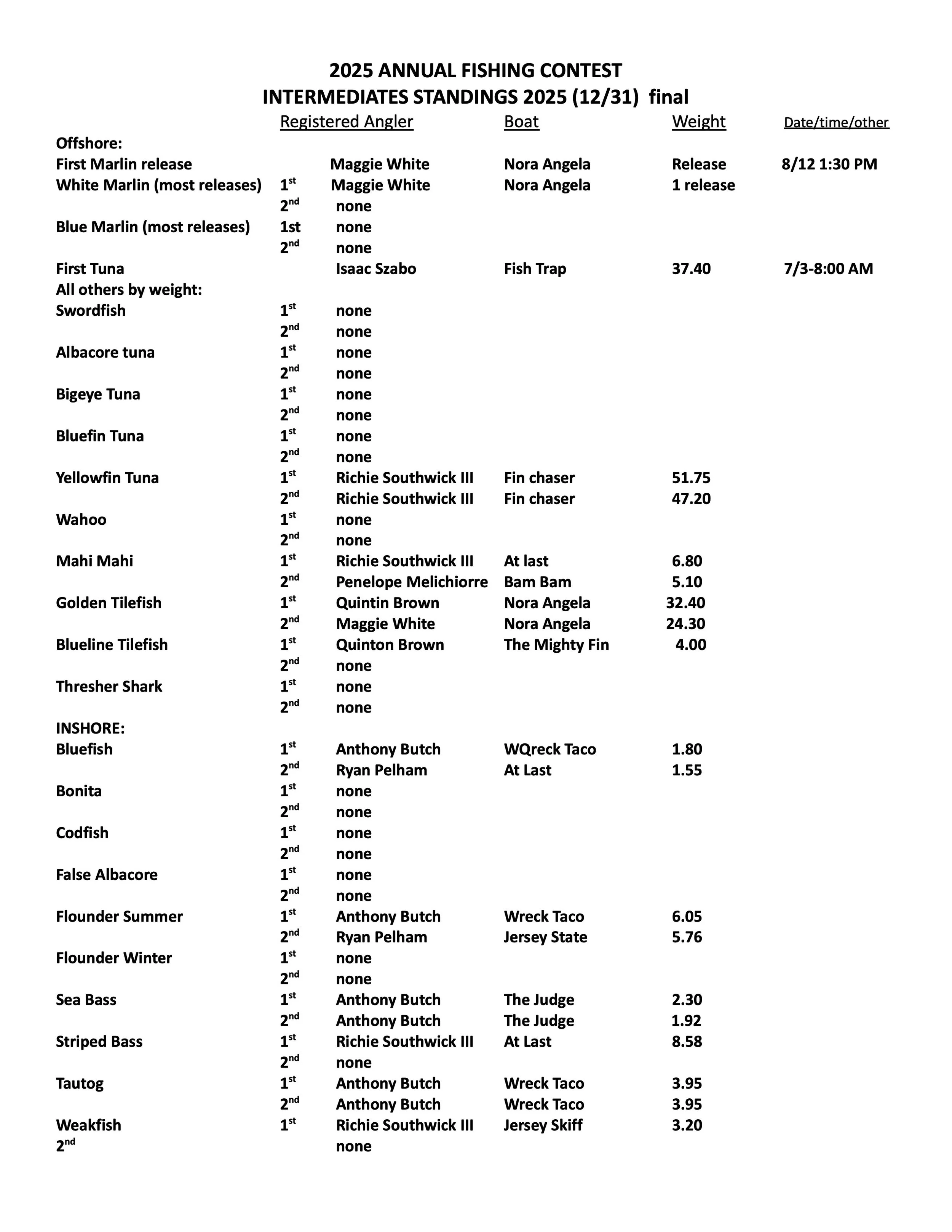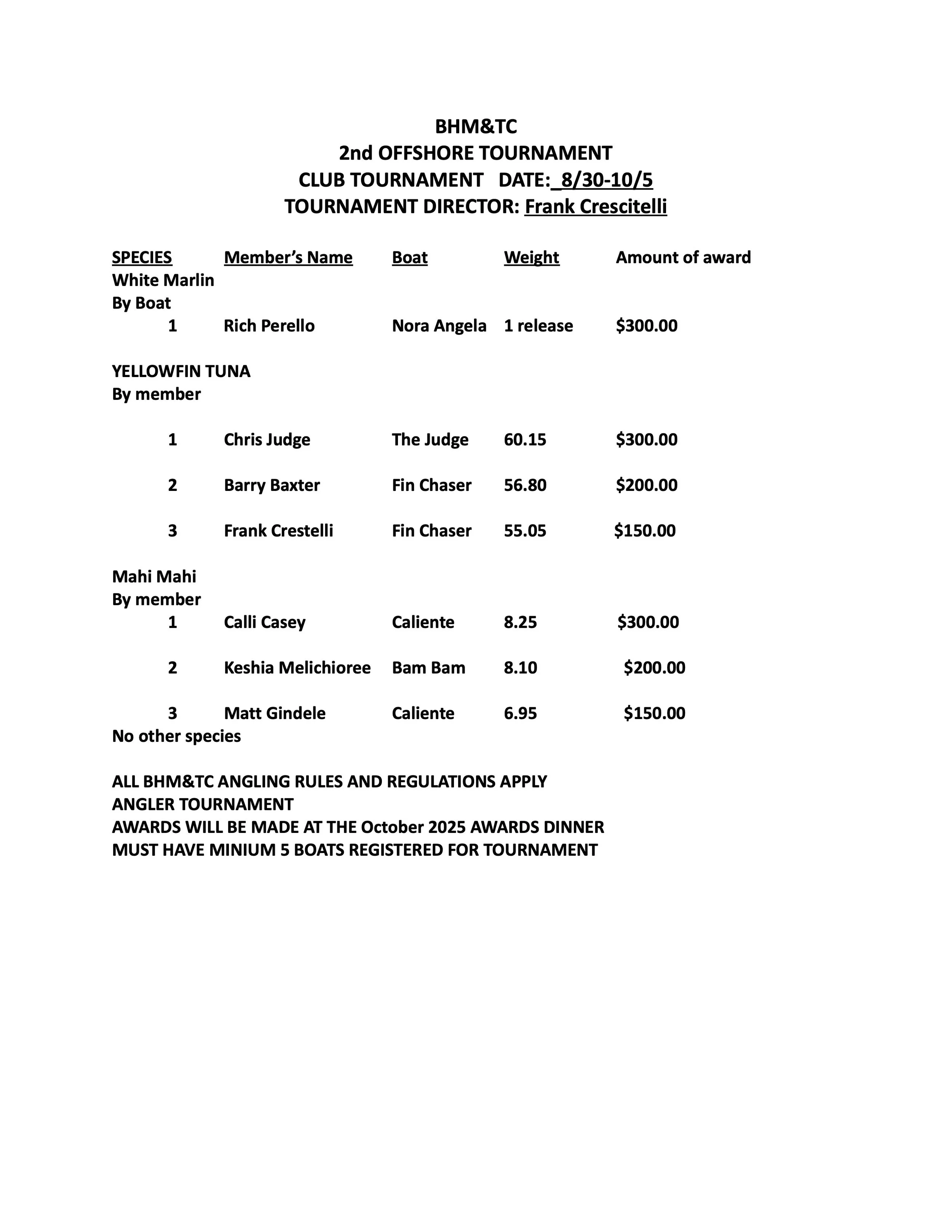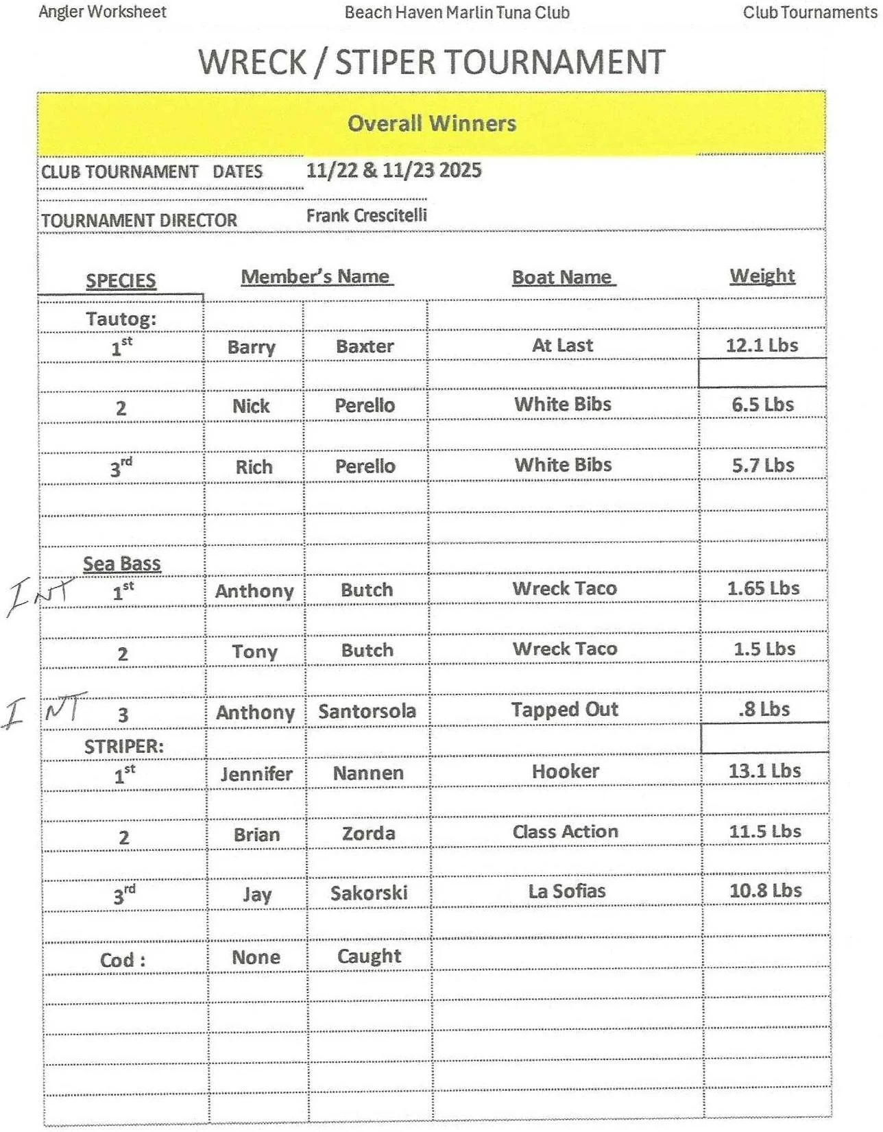 Tournament and Annual Contest Winners