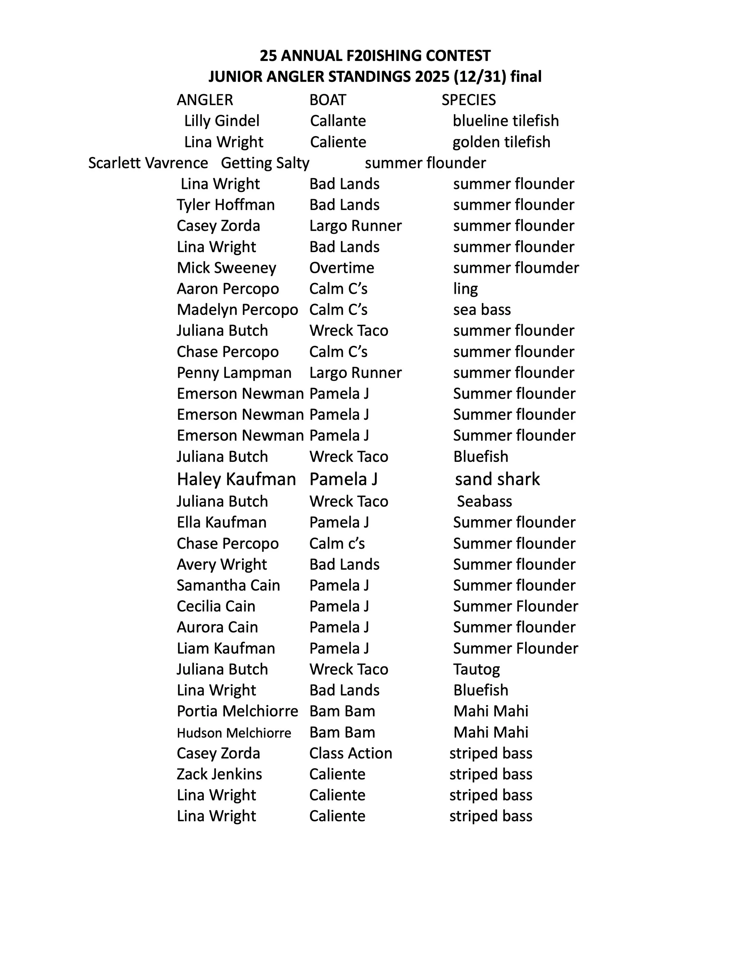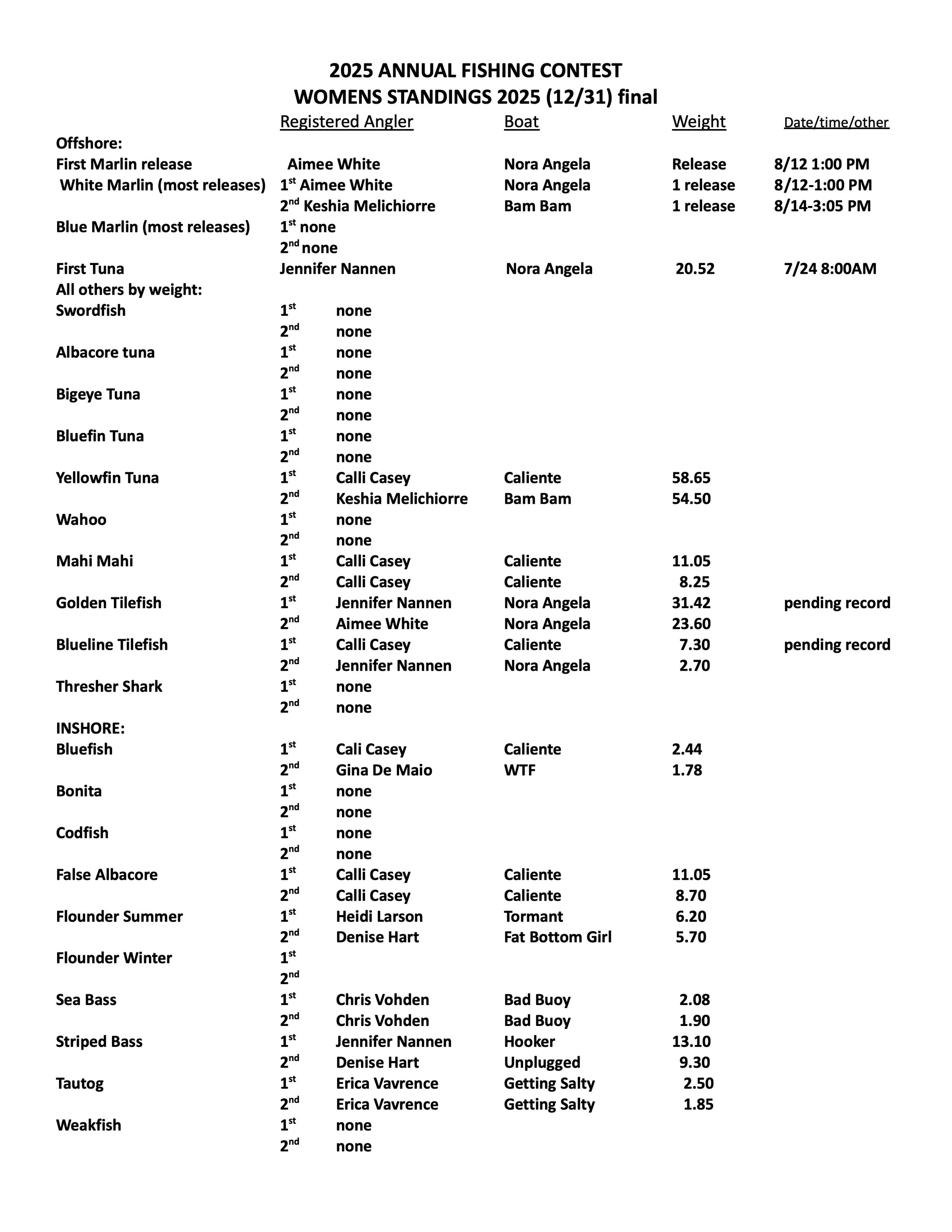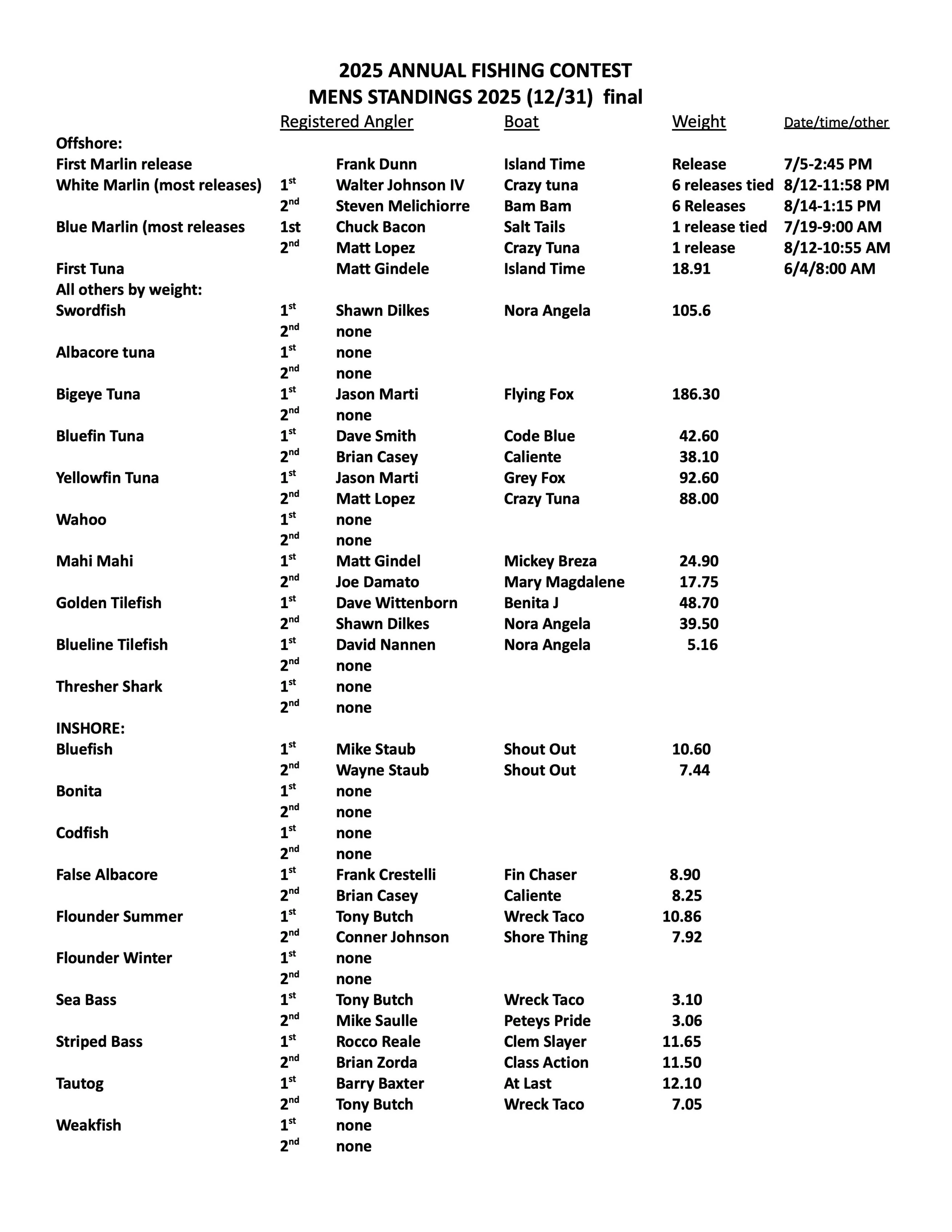 Tournament and Annual Contest Winners